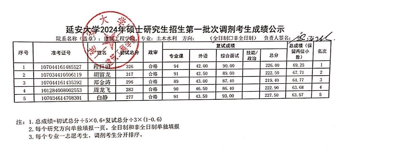 经校研究生院核准,建筑工程学院2024年硕士研究生招生第一批次调剂考生成绩现予以公示,请各位考生查阅。如有异议,请在公示期内以书面形式申请复核并反馈相关意见,逾期不再受理。