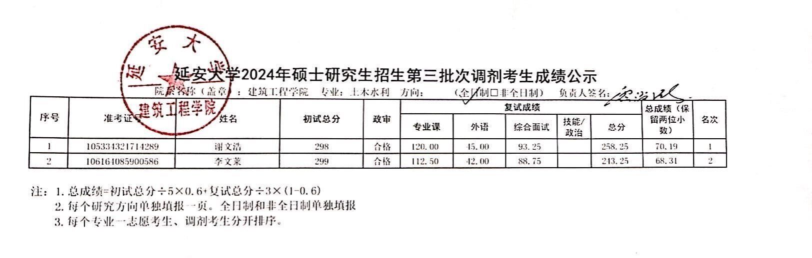 经校研究生院核准,建筑工程学院2024年硕士研究生招生第一批次调剂考生成绩现予以公示,请各位考生查阅。如有异议,请在公示期内以书面形式申请复核并反馈相关意见,逾期不再受理。