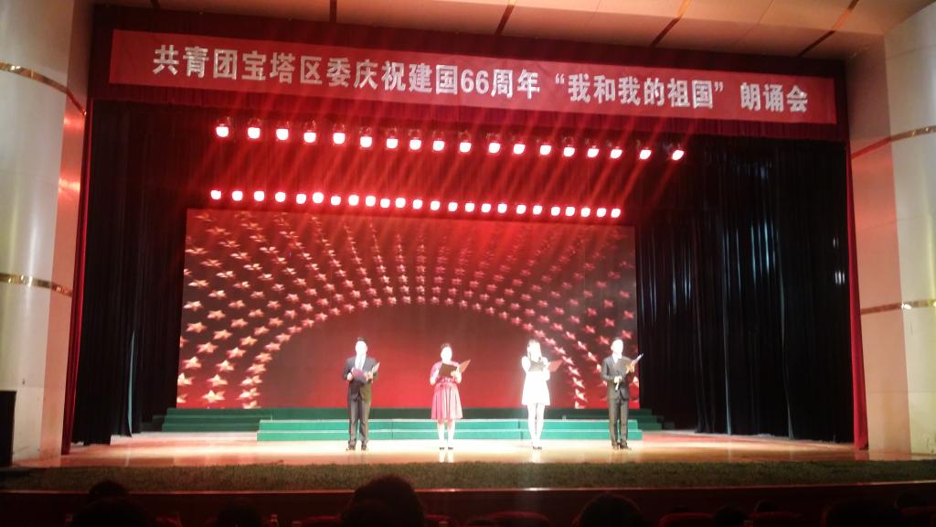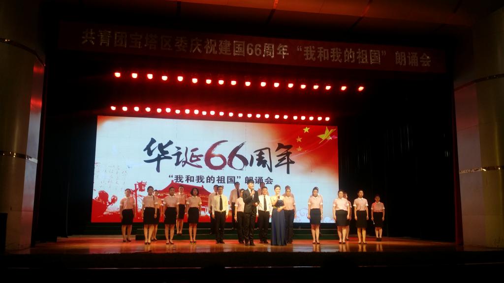 9月25日下午,由延安市宝塔区团委组织的大型朗诵会“我和我的祖国”在文化艺术中心礼堂举行,我院组织学生参加了本次朗诵会。