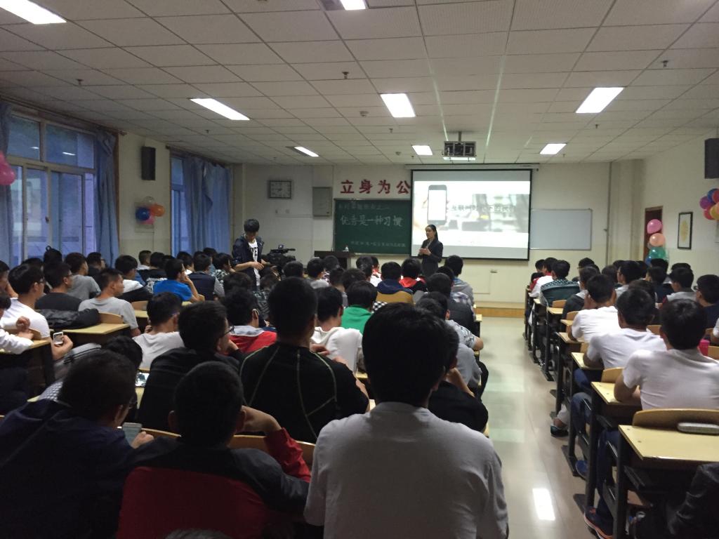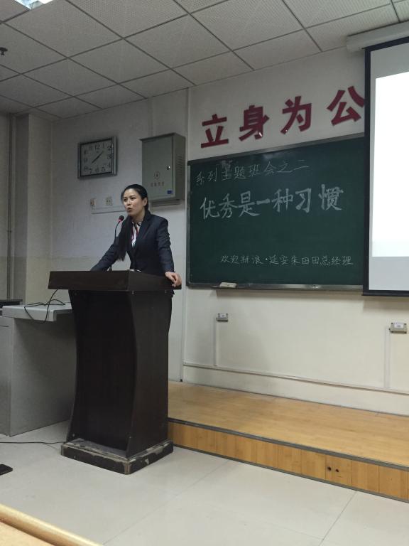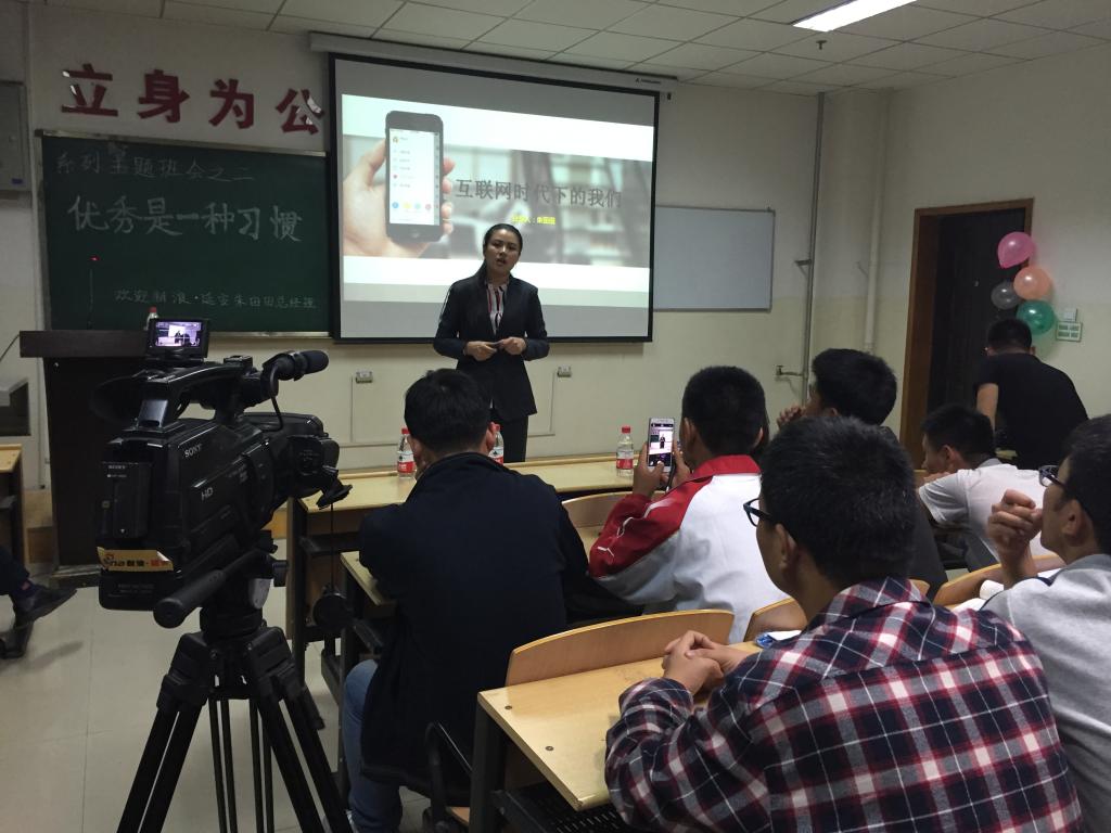 5月23日晚,建筑工程学院14、15级部分同学在玉章楼5306教室举行了“优秀是一种习惯”系列主题班会。新浪·延安总经理、延安市女企业家协会秘书长、延安市十大杰出青年朱田田女士,应邀为同学们畅谈了“互联网时代下的我们”并分享了她创业、工作、生活的经历。本次主题班会由学生会和各班委组织,杜欣老师进行指导。