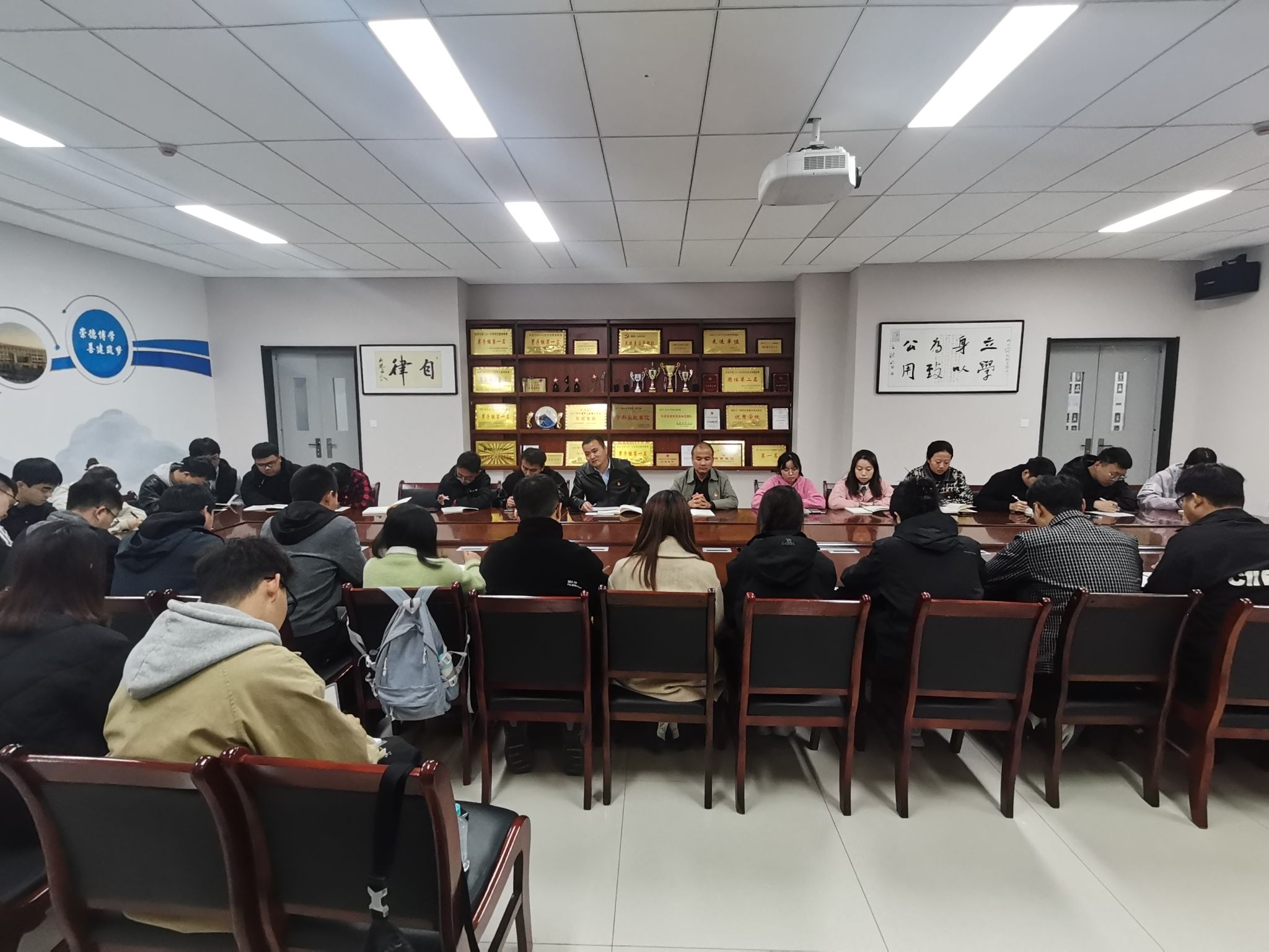 本网讯 10月20日晚,建工学院学生党支部在学院三楼会议室组织召开了党建工作大会。学院党委书记赵耀锋及支部全体党员参加会议。会议由学生党支部书记高飞主持。