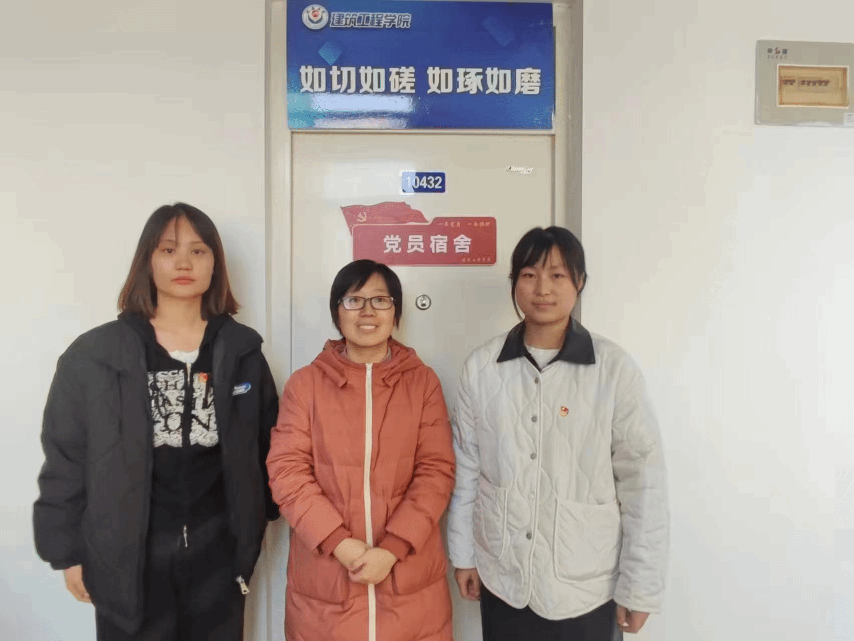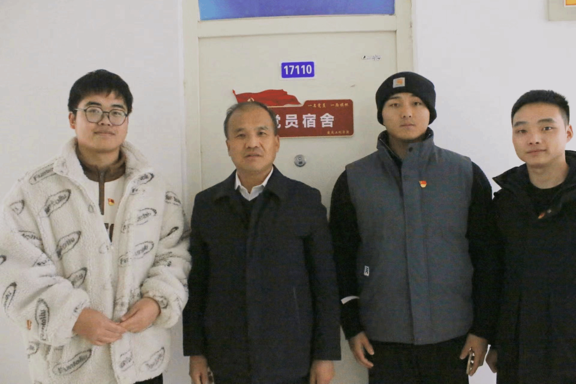 最后,师生党员一起为宿舍挂上“党员宿舍”门牌。