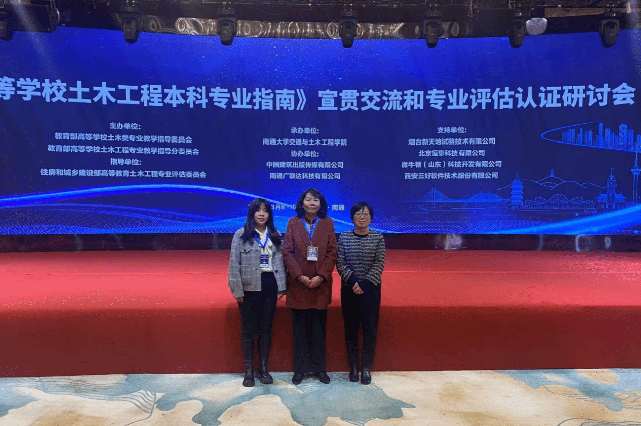 本网讯:3月8日—10日,《高等学校土木工程本科专业指南》宣贯交流和专业评估认证研讨会在南通大学召开,来自全国150余所高校的400余名土木专业专家学者齐聚一堂,共同探讨土木工程专业建设和人才培养的实践与创新。此次会议由教育部高等学校土木类专业教学指导委员会、教育部高等学校土木工程专业教学指导分委员会主办。住房和城乡建设部高等教育土木工程专业评估委员会主任委员、同济大学原常务副校长陈以一教授,教育部高等学校土木工程专业教学指导分委员会主任委员、同济大学孙利民教授及二十余位教指委、评估委委员出席开幕式。学院院长杨红霞、土木工程系主任张扬、实验秘书武雯利一行3人应邀参会。