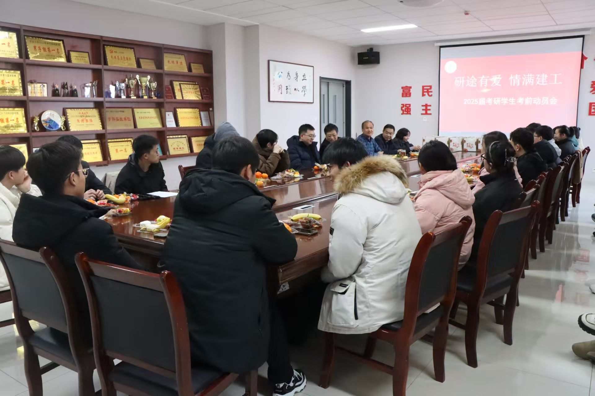 会后,院领导班子成员对考研学生进行慰问并向学生发放慰问品。