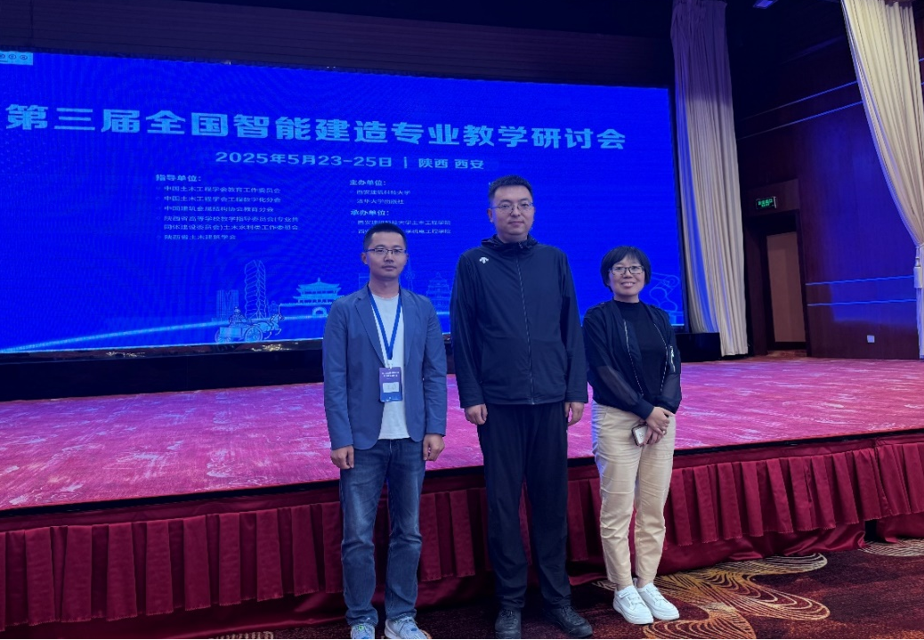 会议期间,张扬、霍治澎同与会权威专家深入交流。向清华大学冯鹏教授、西安建筑科技大学薛建阳教授等学者介绍我院拟在智能建造方向的学科布局与发展规划;围绕“西部高校智能建造专业特色化建设”议题,与同济大学阮欣教授、深圳大学龙武剑教授交换建设性意见;就课程体系优化、实践平台共建等达成多项共识,为我院下一阶段专业升级提供重要参考。
