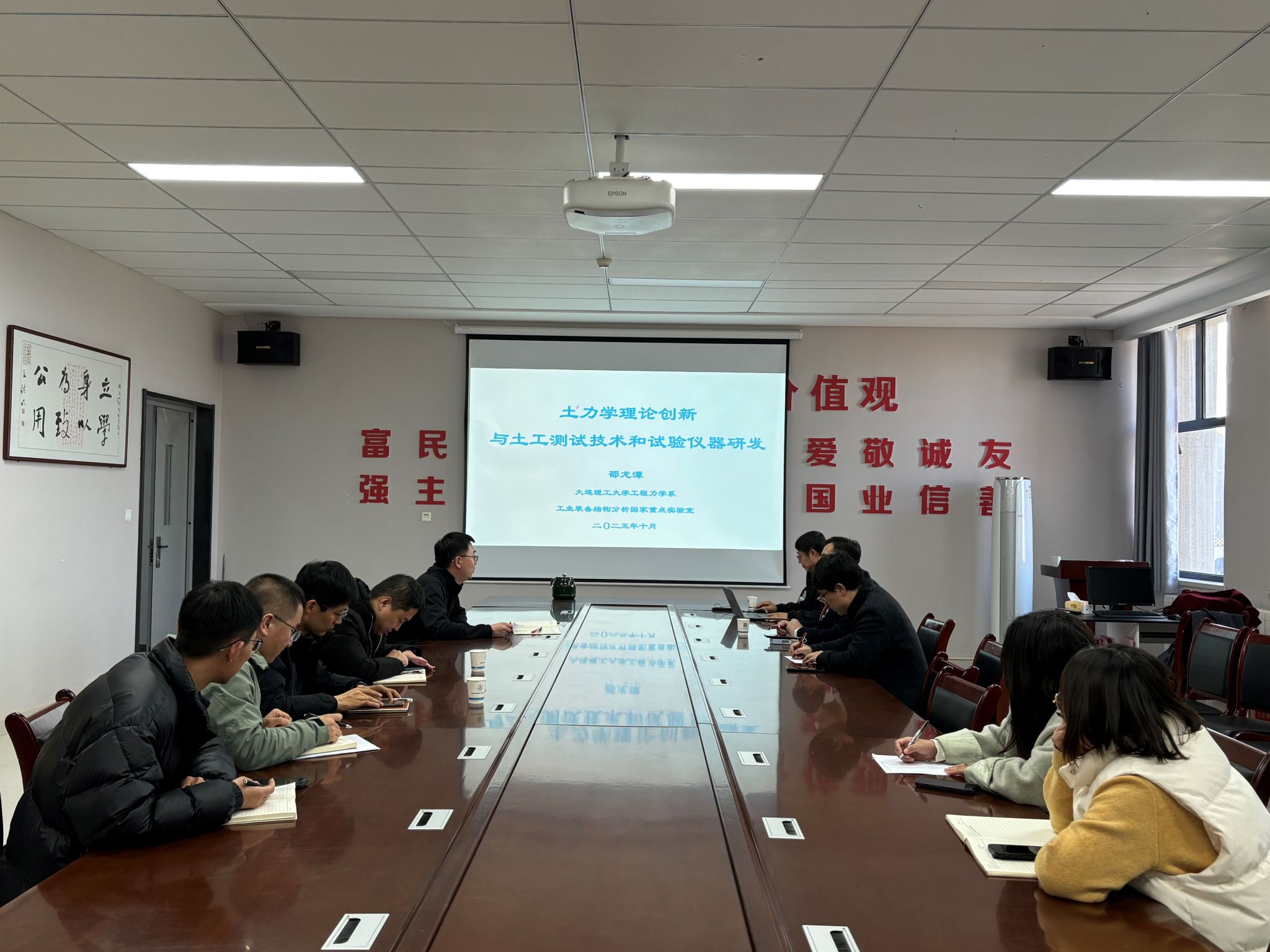报告会上,邵龙潭教授以“土力学理论研究与试验仪器研发”为题,介绍在已有土力学的基础上构建的新理论体系及在土工测试技术和仪器设备研发方面的工作。之后,邵教授基于其深厚的科研积累及成功申报国家自然科学基金的丰富经验,围绕学科发展前沿与国家重大战略需求,深入解析了基金选题的关键准则、创新点的凝练路径以及论证体系的构建逻辑。通过剖析典型申报案例,他为参会教师清晰梳理了从选题设计到申请书撰写的全流程实施策略,并提供了具有操作性的申报指导。在互动交流环节,邵教授进一步针对师生提出的选题培育、学科交叉路径以及申报材料优化等问题,给予了详尽解答。