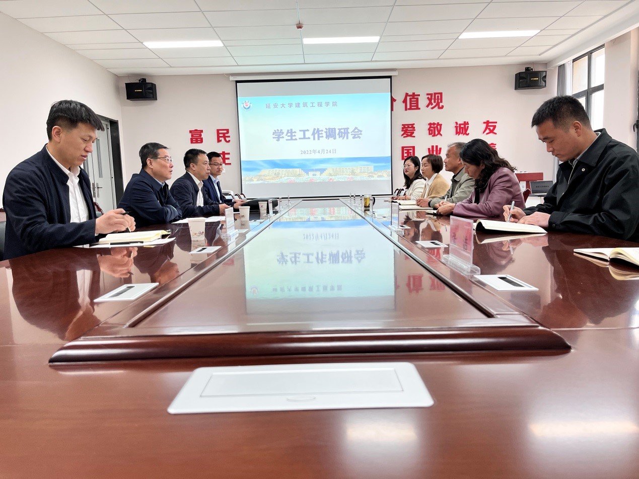 本网讯 4月24日上午,校党委副书记陈华,学工部部长张翔、副部长王彦杰、赵鹏飞来我院调研学生管理和就业工作。学院党委书记赵耀锋、院长杨红霞、副书记李宁以及全体辅导员参加了调研座谈会。会议由学工部部长张翔主持。
