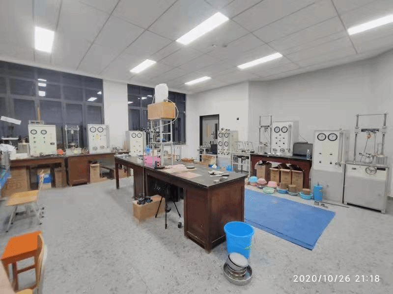 实验室可承担以下实验:①基本实验(服务于本科生、研究生常规实验教学)包括含水量液塑限试验、直剪试验、固结试验、渗透试验、击实试验等常规试验;②专业实验(研究生、师科研实验)包括常规三轴试验、非饱和土固结试验、高压固结试验、非饱和土三轴试验、非饱和土蠕变试验以及物理模型试验等。