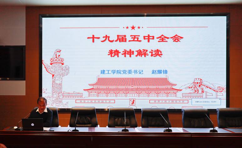 2020年12月18日上午,我院党委书记赵耀锋在图书馆一楼报告厅作了党的十九届五中全会精神宣讲报告。辅导员、学生党员、12期发展对象及57期入党积极分子等150余人听取了报告,报告会由党委副书记李宁主持。