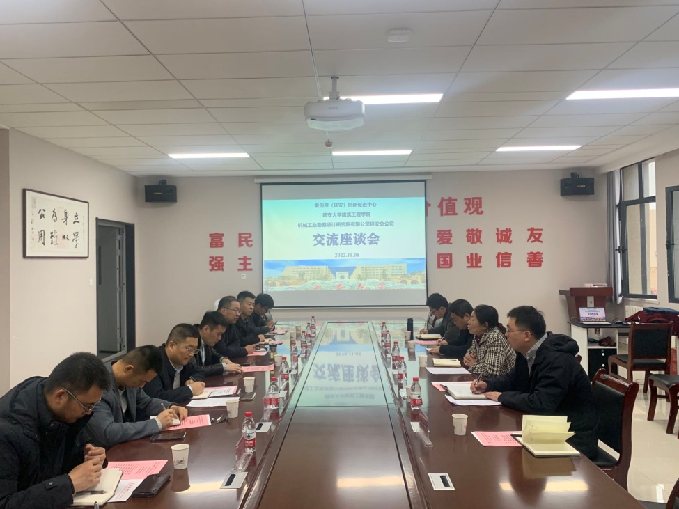 本网讯 11月8日上午,建筑工程学院与延安市高新区管委会、机勘院延安分公司就秦创原平台建设、院企合作、服务地方等方面开展座谈交流。延安高新区管委会副主任齐锴亮,延安高新区科技创新局副局长李觊,延安高新技术创业服务中心张亚周;机勘院延安分公司总经理梁小龙,总工程师王建业,项目经理齐二恒、王强昆;建筑工程学院院长杨红霞,副院长霍治澎,青年教师代表孙杰龙、王拓、陈新岩参加了会议。座谈会在建工楼三楼会议室举行。