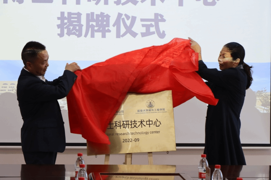本网讯 2022年9月29日下午,公海贵宾会官网jcjc5500建筑工程学院与中建新疆建工西北公司在建工楼三楼会议室举行博士科研技术中心揭牌仪式及合作项目签约。建筑工程学院院长杨红霞、党委书记赵耀锋、副院长李盛斌、博士教师代表邱明明、王拓、拓明明等和中建新疆建工西北公司党委副书记工会主席吴广、西北公司副总经理总工程师王志中、西北公司设计部经理李磊、西北公司科技质量部科技管理负责人张兆吉、延安会议中心C1-02项目总工程师梁建勋、延安会议中心G1-02项目书记总工程师刘玮等共同出席,仪式由建筑工程学院院长杨红霞主持。