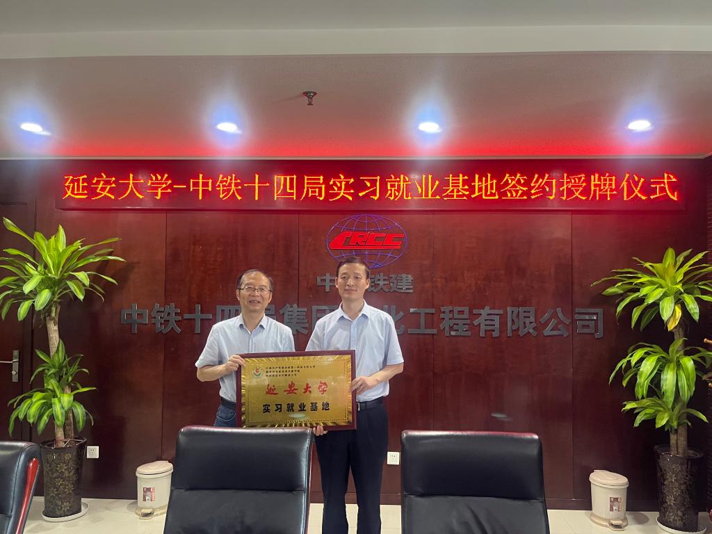 下午,范育琳一行来到中铁十四局集团西北公司举行实习就业基地签约授牌仪式,公司总会计师李国、财务部部长陈志涛、办公室主任薛玉凤、人力资源部部长杨景军参加会议。会议由李国主持。李国在致辞中对范育琳一行表示热烈欢迎,并从公路工程、铁路工程、桥梁工程、隧道工程、海外工程等业务板块方面介绍了企业成长、成就与特色。他表示公海贵宾会官网jcjc5500培养的32位毕业生求真务实、吃苦耐劳,在实际工作中弘扬延安精神,取得了优秀的成绩。希望以此次访企拓岗活动为契机,继续深化校企合作,在人才培养、科学研究等方面再上新台阶。范育琳简要介绍了学校基本情况和来访目的。他表示,公海贵宾会官网jcjc5500一直以来秉承“立身为公 学以致用”的校训,培养出一批批具有延安精神特质的时代新人,希望双方下一步全方位深化合作,共同搭建校企合作新平台,实现校企合作协同育人,产教融合共建共赢。