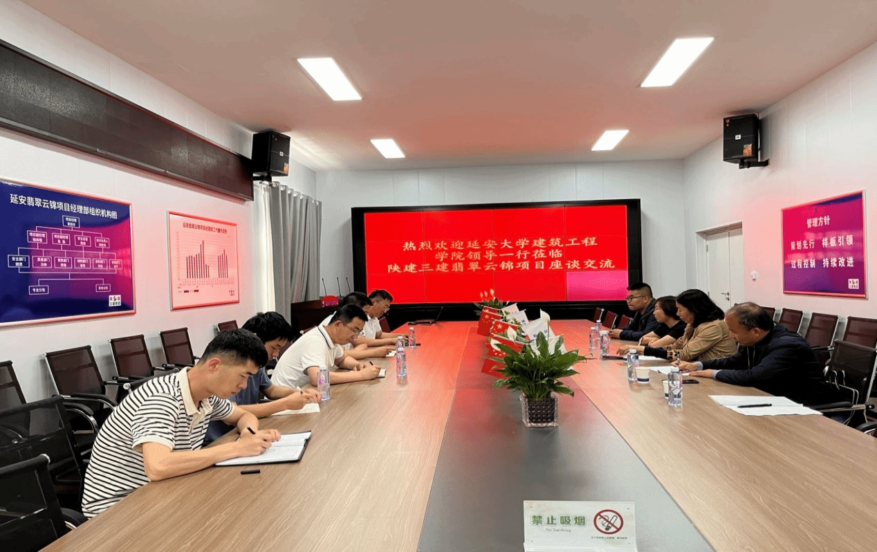 6月1日下午,建筑工程学院一行赴陕建第三建设集团走访调研,并与企业举行校企共建合作交流会。陕建三建在延项目部经理高耀林、副经理王超、项目技术负责人韩宏伟、安装经理何平;建工学院院长杨红霞、党委书记赵耀锋、党委副书记李宁、组织员高飞和曹海龙老师参加会议。会议由副经理杨尚聪主持。高耀林在致辞中对建工学院一行表示热烈欢迎,并从企业发展历程、业务范围、机构设置、企业文化、人才需求、专业岗位设置等方面进行了介绍,重点对延安新区翡翠云锦项目作了详细介绍。杨红霞简要介绍了学院本科教学、专业发展、人才团队、科研成果、研究方向、实践创新、实验室建设等方面的情况。杨红霞为两家企业授予公海贵宾会官网jcjc5500实习就业基地铭牌。